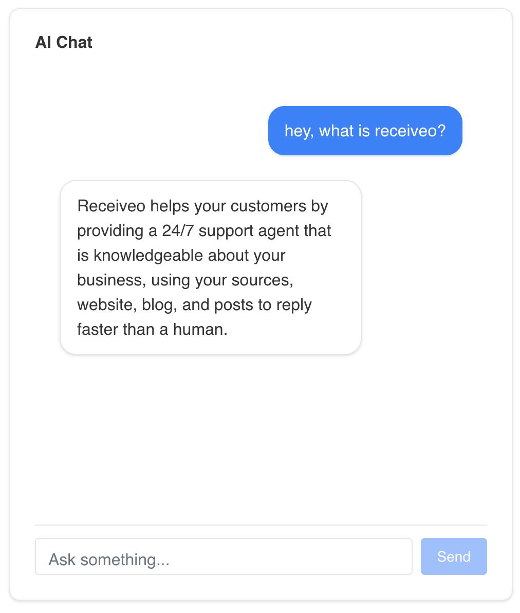 Tap into all your knowledge sources — from your website and blog to help docs and product pages. Receiveo’s AI uses your own content to deliver accurate, helpful answers that build trust and keep visitors engaged.